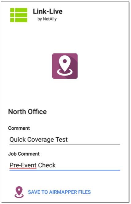 7. Введите любые Комментарии, которые необходимо прикрепить к результату AirMapper, в Link-Live и нажмите СОХРАНИТЬ В ФАЙЛЫ AIRMAPPER.