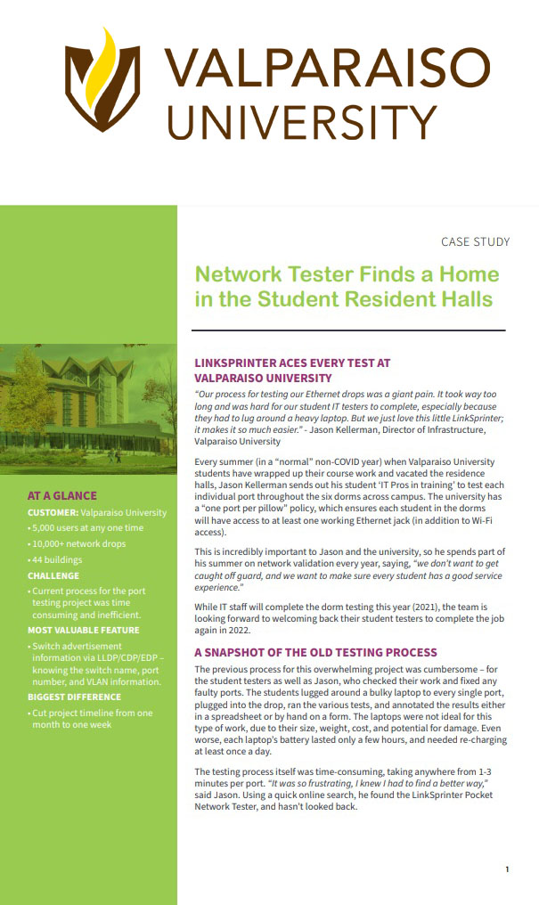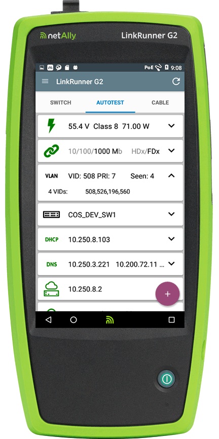 LinkRunner G2 и AirCheck разработаны с учетом потребностей этих специалистов. Автотесты в один клик позволяют им проверять DNS, DHCP, LLDP / CDP, подключение коммутатора, пинг службы, подключение TCP, выполнить тестирование пропускной способности и проверить параметры ответа приложений.