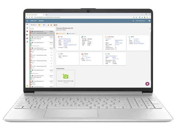 тестеры и анализаторы NetAlly позволяют автоматически загружать результаты тестирования в бесплатную защищенную облачную среду Link-Live ™. Это позволяет ИТ-организациям организовать единый центр автоматизированной сетевой документации: тесты подключения, обнаружение устройств, отображение сети, тепловые карты Wi-Fi, захват пакетов, карты покрытия сигналов, тесты каналов и тесты пропускной способности.