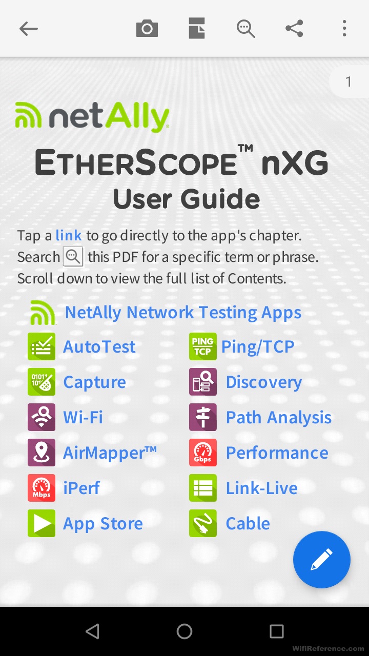 Касательно функциональных возможностей - это действительно мастер на все руки. EtherScope позволяет выполнять практически все задачи, для решения которых я привык использовать свой AirCheck G2, а также проводить множество тестов проводного подключения. Он способен на столько разных вещей, что производитель даже вмонтировал руководство пользователя в сам прибор.
