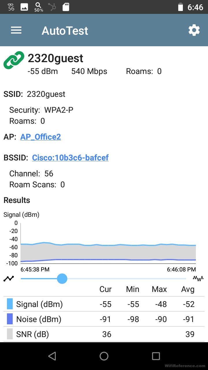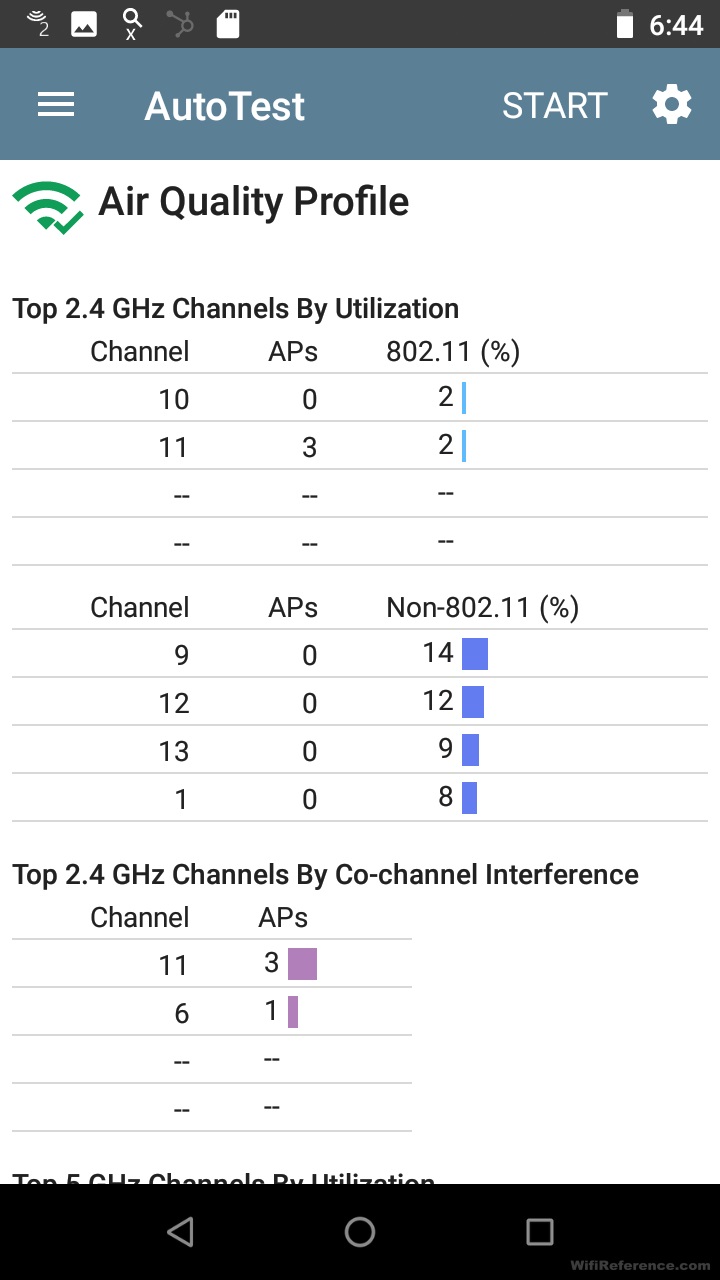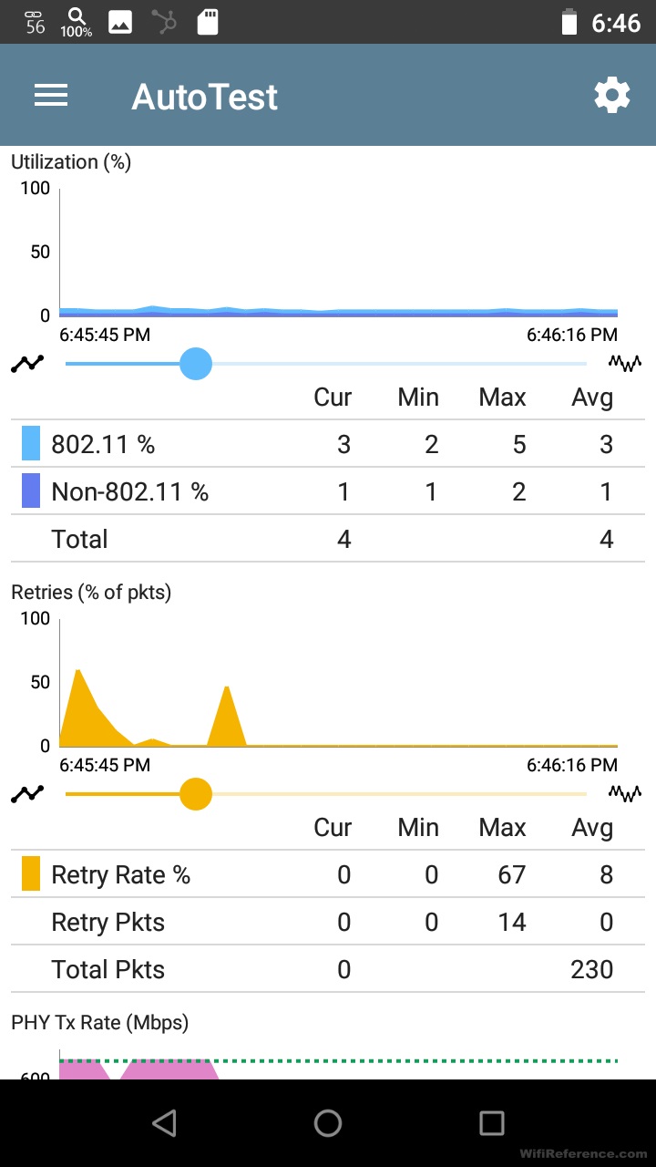 Функция автоматического тестирования также дает вам необходимое количество подробностей о среде Wi-Fi. Вот несколько снимков экрана, на которых показаны записанные детали: