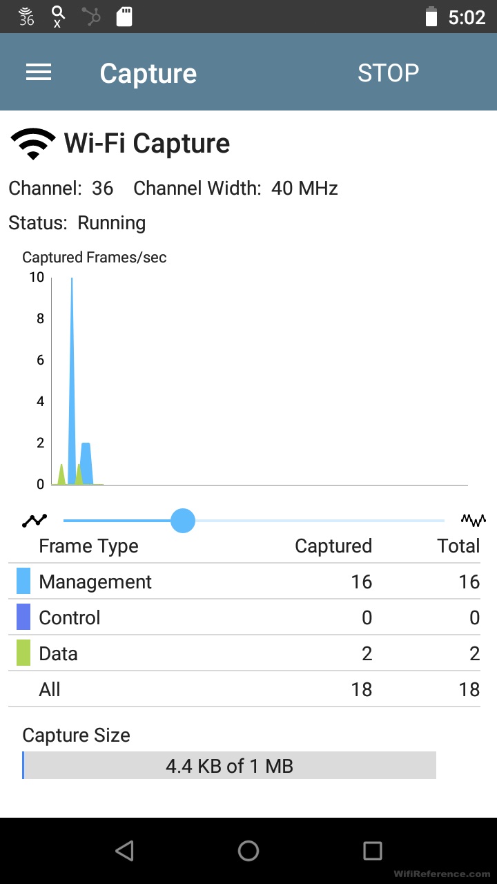 В дополнение ко всем тестам, которые он может проводить, EtherScope nXG также может выполнять проводной и беспроводной захват пакетов! Захваты беспроводных пакетов включают заголовок (radio tap header), поэтому вы можете видеть мощность сигнала и физическую скорость каждого кадра, полученные устройством. Пока выполняется захват, он дает вам счетчик времени каждого кадра (управление, контроль, данные). Конечно, вы можете установить ограничения по времени и размеру для захвата, а также канал и ширину канала.