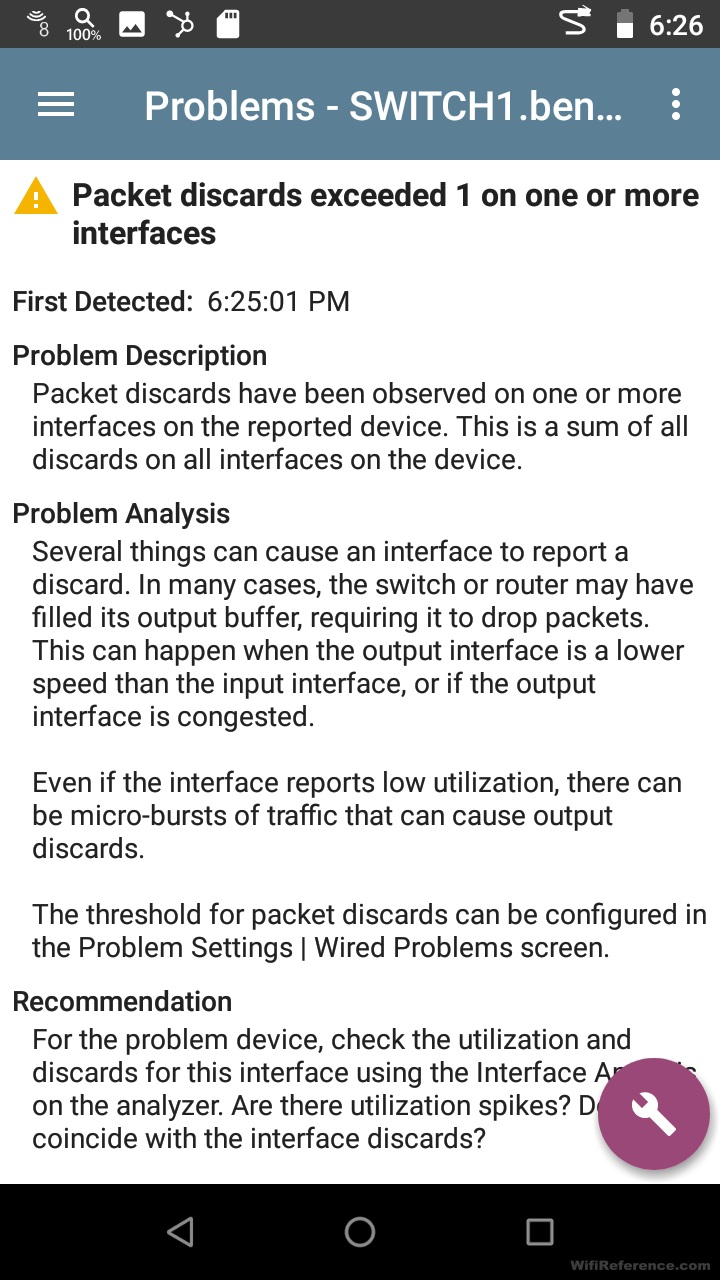 Я был очень впечатлен функцией сетевого обнаружения устройств. Ранее я предполагал, что это будет простая проверка пинга и совпадение OUI, но это гораздо больше. Инструмент позволяет указать диапазоны IP-адресов за пределами диапазона, к которому вы подключены, и он будет сканировать их. Приложение использует ICMP и SNMP для сканирования устройств, которые оно находит в сети. В моей сети он обнаружил все мои клиенты, серверы и даже виртуальные машины, которые существовали на моем хосте VMware ESXi. Приложение Discovery объединяет информацию, полученную из сети Wi-Fi, а также из проводной сети. Оно очень быстро сканирует сети и выдает отчет о ходе выполнения (вы можете запустить его в фоновом режиме, и он будет отображать прогресс в строке состояния в верхней части экрана). На этом скриншоте видно, что открытие выполнено на 60%, как отмечает лупа в строке состояния. Он даже выходит за рамки базового обнаружения и сообщает о проблемах с любым из обнаруженных устройств, как показано ниже.