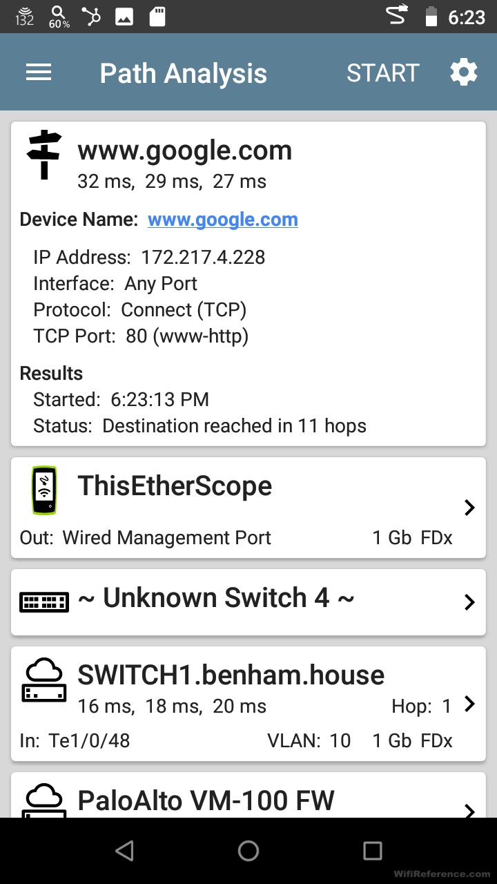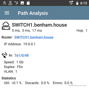Я не ожидал, что меня впечатлит функция анализа пути, так как предполагал, что это будет базовая функция traceroute. Однако это выходит далеко за рамки следового маршрута. Он предоставляет вам физический путь потока пакетов в вашей сети. Он показывает каждый порт коммутатора восходящей линии связи каждого коммутатора на пути, по которому прошел пакет. Это очень крутая функция! К сожалению, в моей тестовой среде у меня не так много коммутаторов, но вы все равно можете увидеть порт коммутатора, указанный на скриншоте ниже.