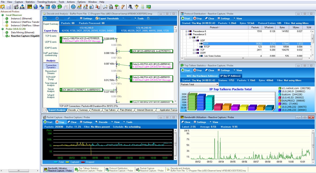 Observer Analyzer является рабочей лошадкой всей платформы Observer. Решение объединяет в себе возможности мониторинга сети с такими функциями как анализ приложений, декодирование трафика, распознавания голосовых и видео потоков. Долгое время Observer Analyzer поставлялся как классический анализатор протоколов со встроенной экспертной системой, которая существенно расширяет возможность бесплатных анализаторов, типа Wireshark.