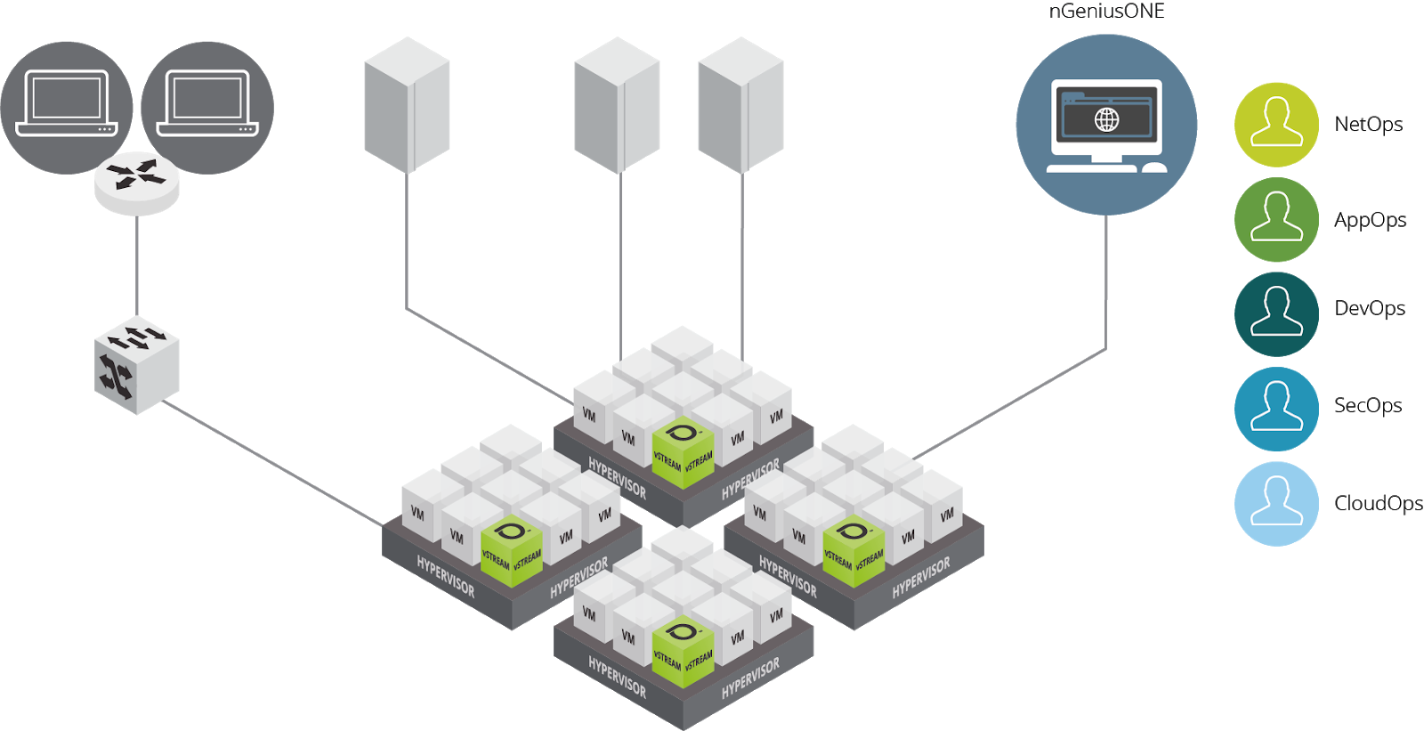 Видимость в виртуализированной среде обеспечена инструментами ASI и vSTREAM на развернутой платформе nGeniusONE Service Assurance. Все участники ИТ-системы могут использовать преимущества автоматизированного анализа активности в сети.