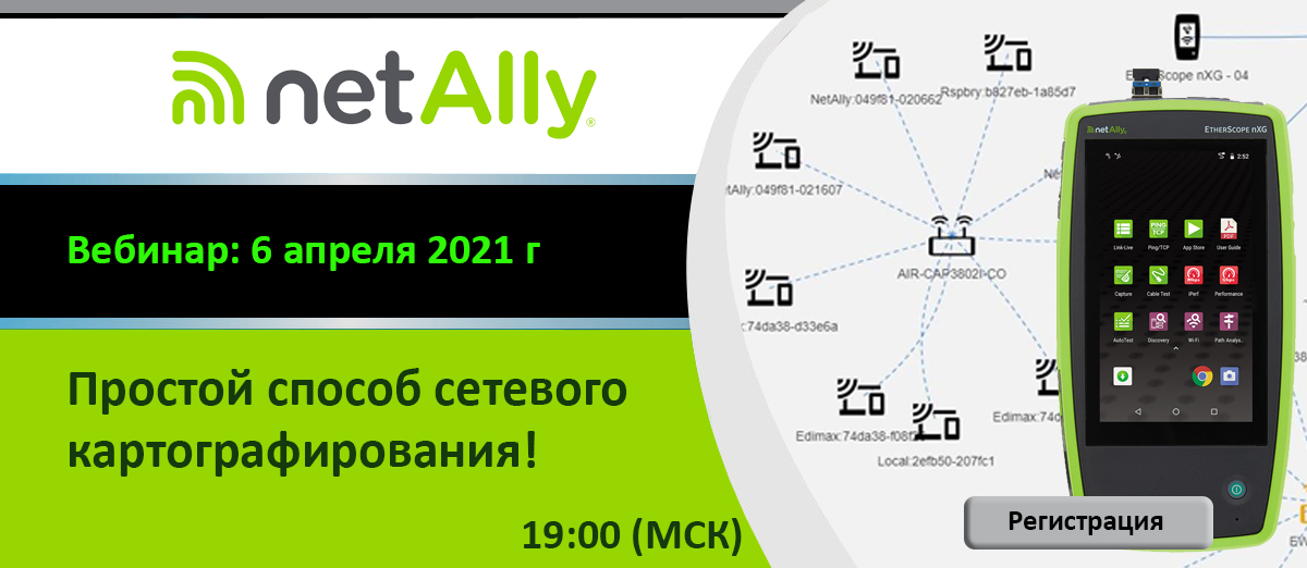 Приглашаем посетить вебинар компании NetAlly, в течении которого будет показано как быстро и легко получить самые точные карты сети с помощью NetAlly EtherScope® nXG и Link-Live ™ Cloud Service.